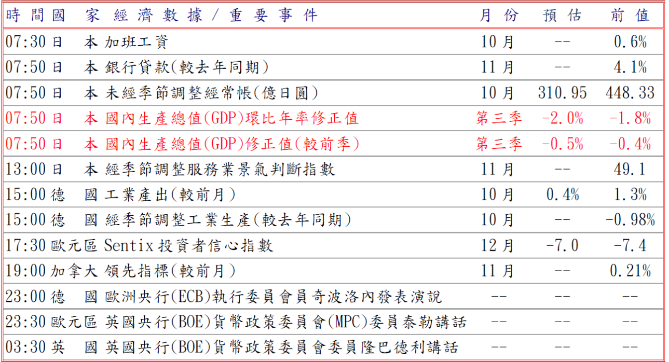 據彭博新聞報導,若沒有任何重大經濟衝擊,BOJ官員已準備在12月19日加息,而且日本經濟財政大臣城內實希望BOJ繼續與政府密切合作,適當引導貨幣政策,以穩定實現2%通貨膨脹目標,具體貨幣政策手段將由BOJ決定,但美國公布9月核心個人消費支出(PCE)物價指數較去年同期放緩至2.8%,但PCE物價指數較上年同期升至2.8%,並與核心PCE物價指數分別較前月漲0.3及0.2%持平前值,另外個人所得與消費支出分別增長0.4%及0.3%,而且密西根大學調查美國12月消費者信心指數意外升至53.3優於預期,提振美元兌日圓至155.49高點。預估今日美元兌日圓阻力於155.20-40,支撐於154.00-20。