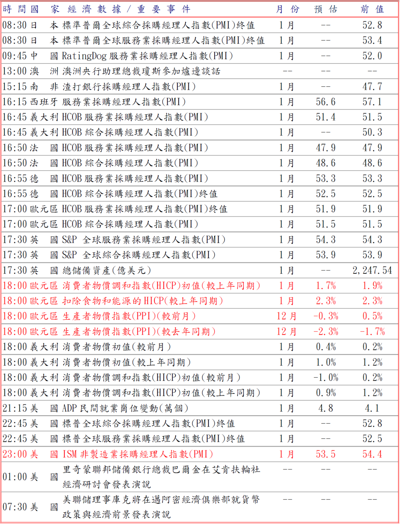 美國1月製造業活動實現一年來首次擴張,其中前瞻性新訂單指數也創下2022年2月以來新高,隨著新訂單激增恐意味著供應鏈承受壓力且投入成本上升,與此同時,隨著美國與印度達成貿易協議,並宣布將重啟與伊朗核談判,地緣政治緊張局勢降溫,激勵美元上漲;此外,據日本農林水產省公布數據顯示,2025年日本農林水產品出口額增長12.8%,實現連續第13年增長並創歷史新高,儘管美國加徵關稅,但對美出口仍保持強勁增長,同時對華出口也從前一年的低迷中反彈,不過日本首相高市早苗在上週末一場競選講演中大談弱勢貨幣好處觸發日圓拋售潮的影響持續,即使財務大臣片山皋月為首相高市早苗強調日圓貶值益處的言論辯護,並強調首相僅是在泛泛而談日圓貶值對經濟的影響,是教科書上的基本概念,但高市發言在短時間仍壓抑日圓,推動美元兌日圓自155.28低點上漲。